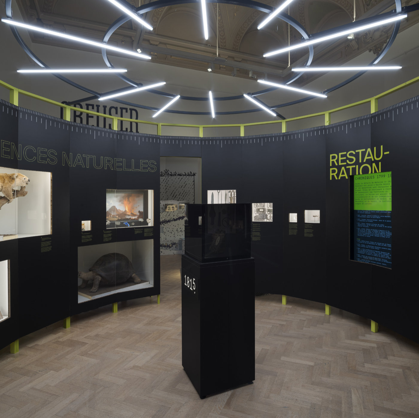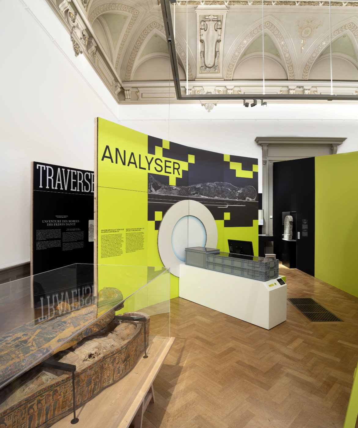 An exhibition designed with Curious Space lead designer, Anna Jones, as a chronological guide through the history of archaeology, comparing outdated methods with contemporary science. The majority of the builds are modular wooden frames with printed recycled card panels. My input involved 3D design, Rhino 3D models of the full exhibition and a large portion of the construction drawings.